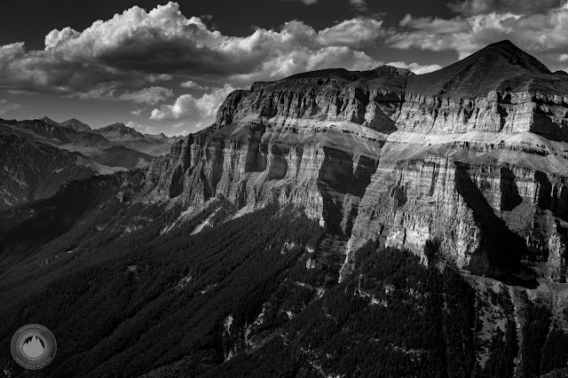 Widok z niego przypadł mi znów bardzo do gustu - ściany Punta Tobacor i Pico Mondarruego tworzą od tej strony imponującą perspektywę. W dodatku w międzyczasie (z Mirador de Punta L'Acuta go nie widać) pojawił nam się w tle jeden z wyższych trzytysięczników w tej części Pirenejów - El Tallon (również: Pico Taillon, fr. Pic du Taillon, arag. Punda Negra - 3144 m.n.p.m.).